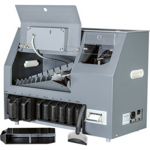 - Сортировка монет по номиналу с возможностью посмотреть на дисплее и распечатать на встроенном принтере детализированный отчет.
