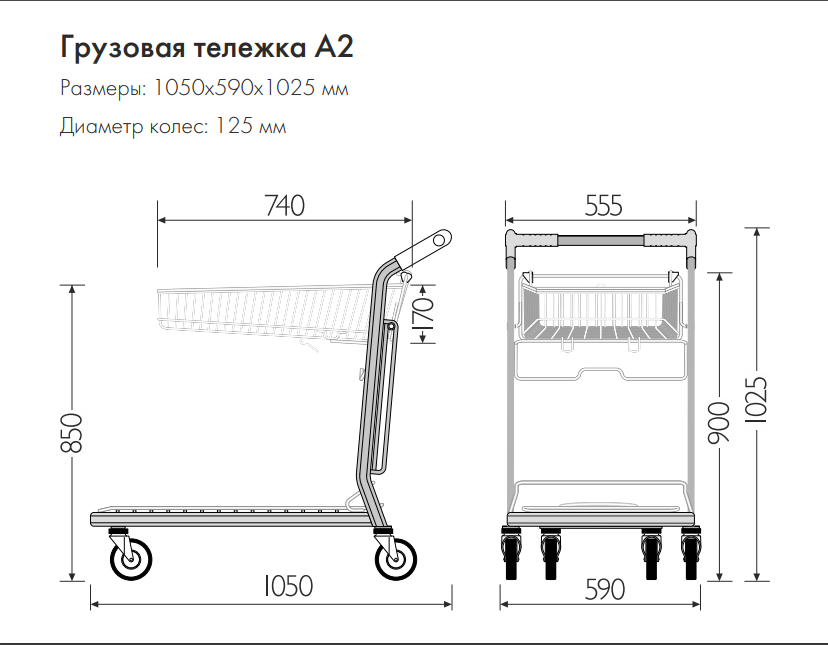 - Диаметр колес 125 мм
