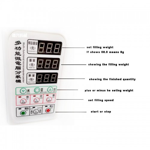 Может применяться на пищевых, химических, медицинских и других производствах. Устройство используется для взвешивания и фасовки чая, трав, орехов, соли, сахара, крупы, мелких гранулированных продуктов, семян, химических веществ, фармацевтических препаратов, микро-и малых компонентов (нелипких твердых материалов).